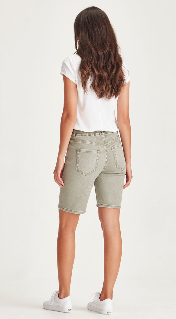Super soft & comfy premium stretch denim shorts with elasticated waist band and string tie. Can be worn higher or lower on the waist as preferred.