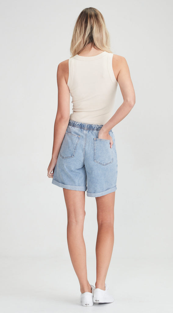 Length: approx. 45cm measured from side of waist band to folded hem.