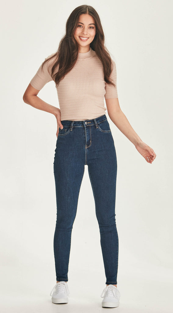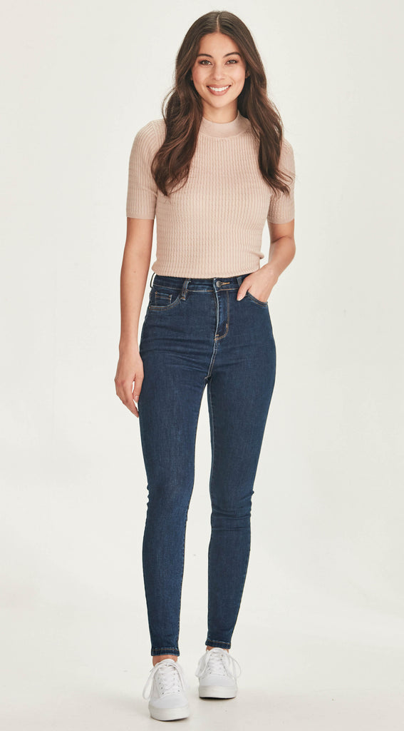 Super high waisted, stretch denim skinny jeans.