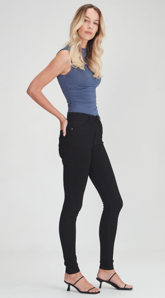 Classic Black is a high rise jean in an ultra stretch denim soft stretch denim with 4 way hold, stretch and recovery technology and a great pitch black colour.
