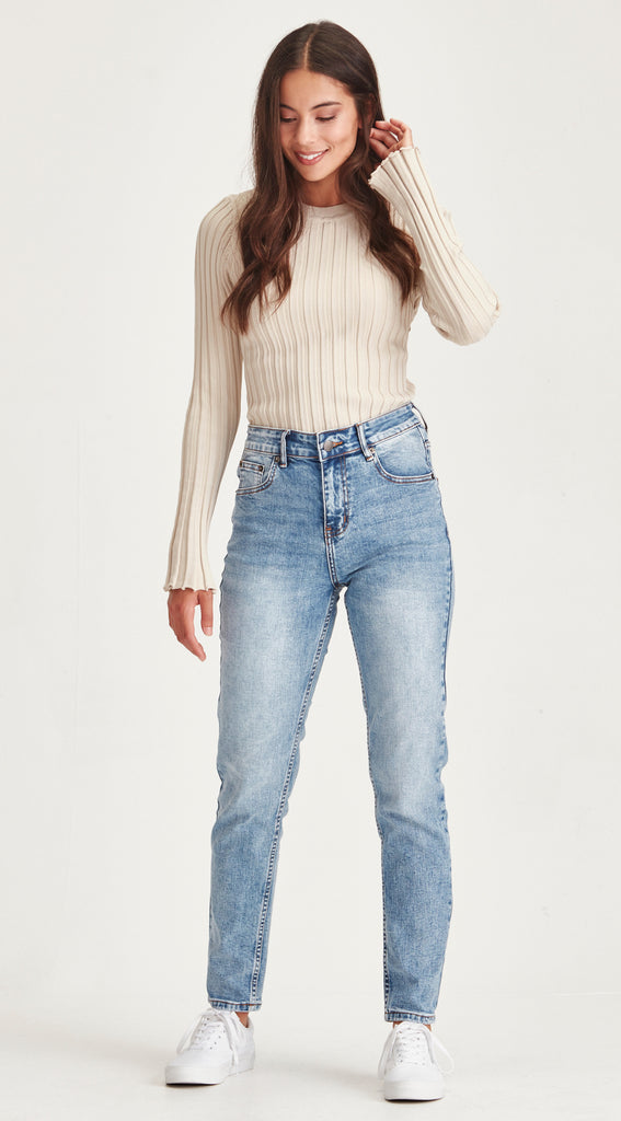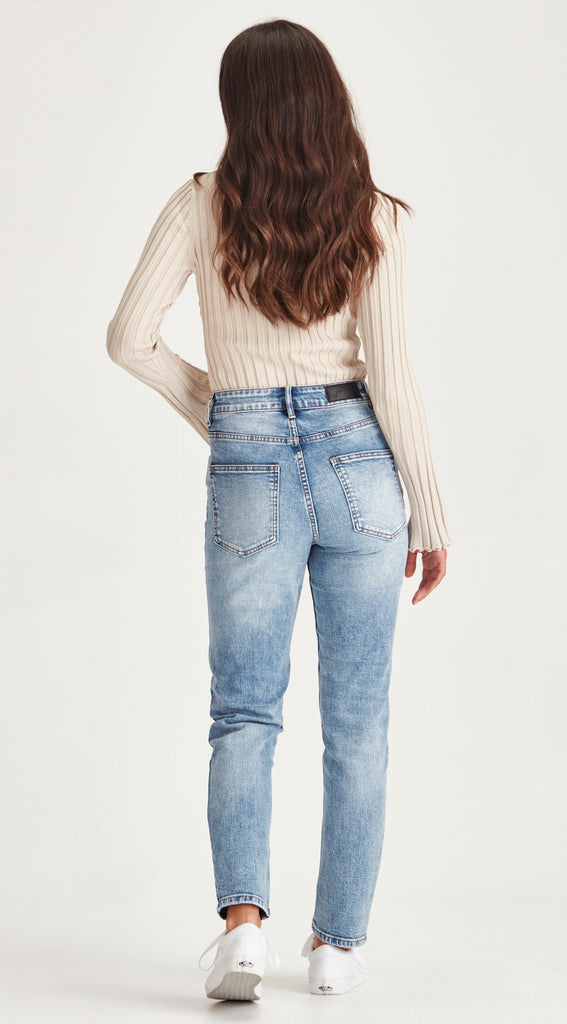 Our popular Kaitlin Jean now in a non ripped version. In a premium stretch denim with a classic tapered straight leg fit.