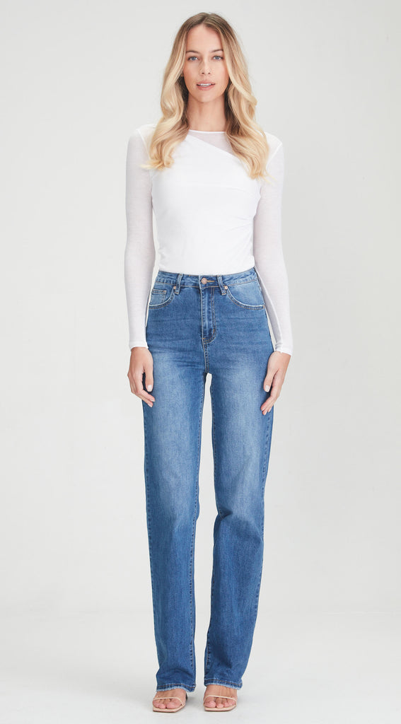 In a high rise straight leg design. In a low stretch lighter weight denim. Tall Street is more fitted to the body with a relaxed, tapered leg fit.